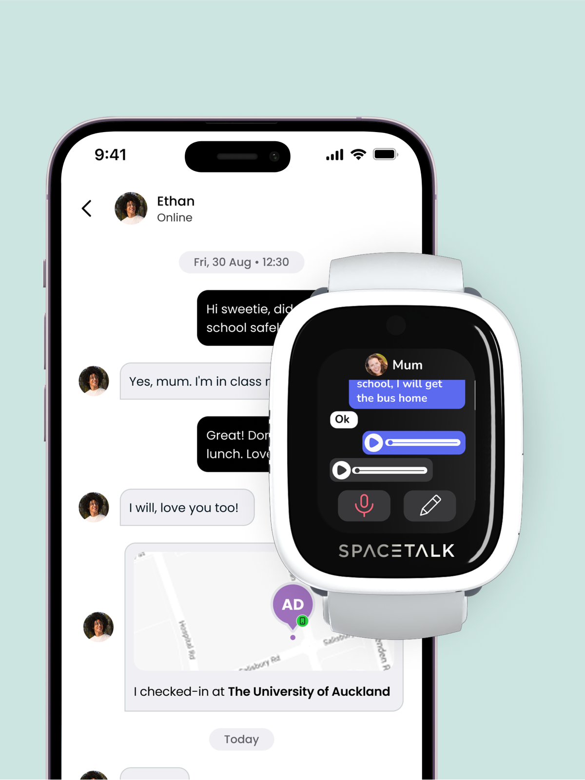 Spacetalk da prioridad a la privacidad y la seguridad. La aplicación utiliza el cifrado para las comunicaciones, y sólo los contactos aprobados pueden acceder a la ubicación del dispositivo o enviar mensajes. Solo los contactos de confianza pueden conectarse con el dispositivo o con tus hijos.