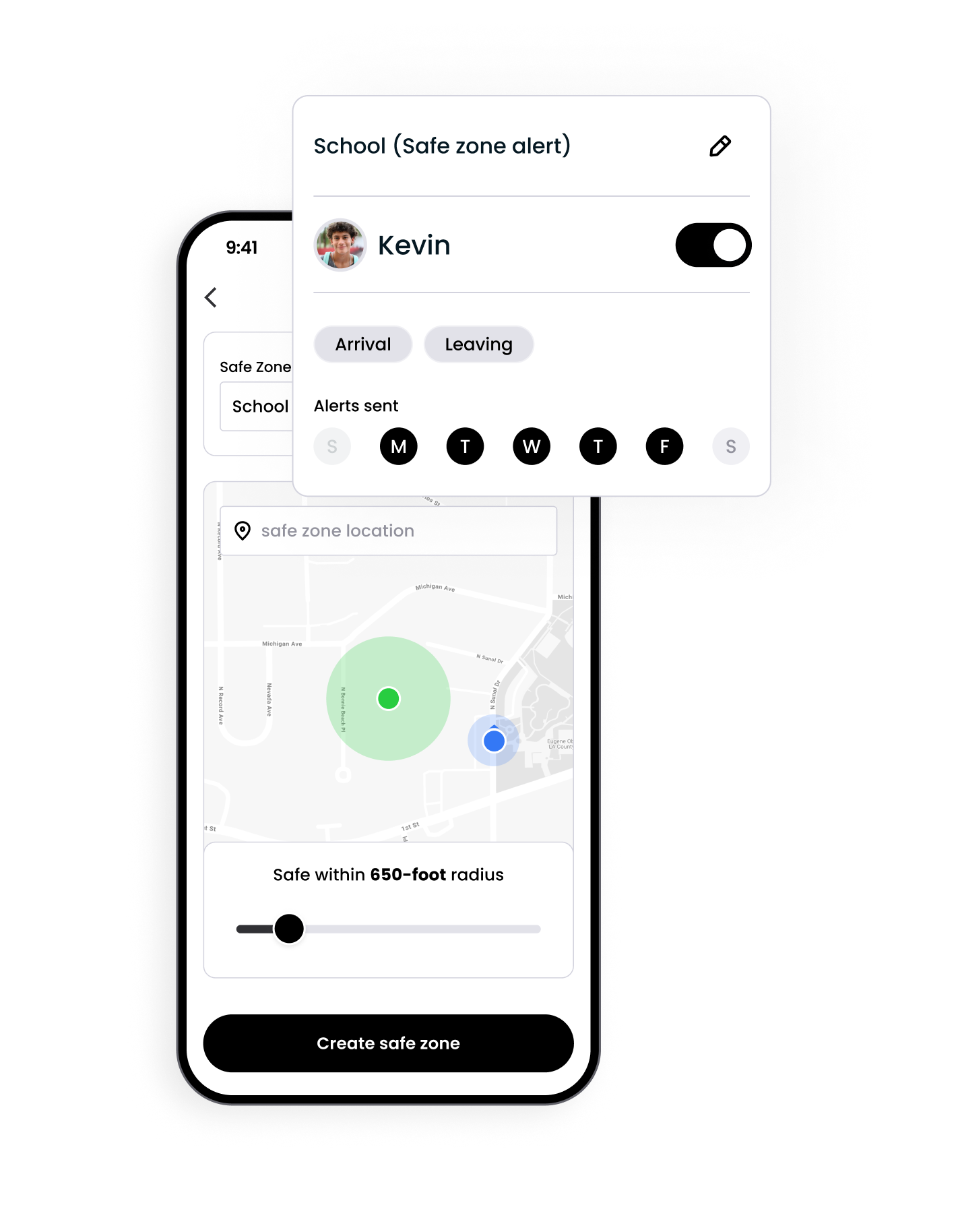 Turvavyöhykkeet hälytyksillä: Aseta kartalle virtuaalisia rajoja tuttujen paikkojen ympärille. Saat hälytyksen, kun läheisesi saapuvat alueelle tai poistuvat sieltä.