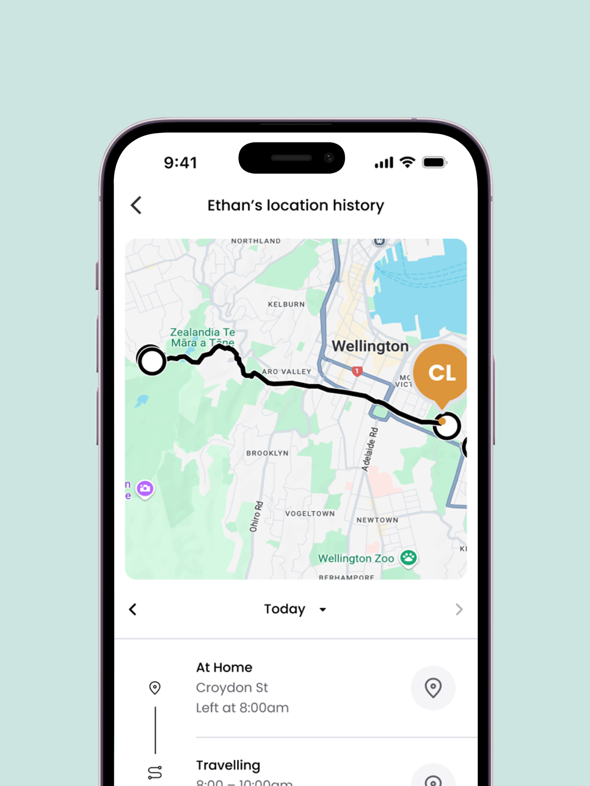 Affichez les 30 derniers jours de localisation, y compris le jour et l'heure de la visite. Vous pourrez également voir quand les contacts sélectionnés se déplacent et les zones de sécurité dans lesquelles ils sont entrés ou qu'ils ont quittées.
