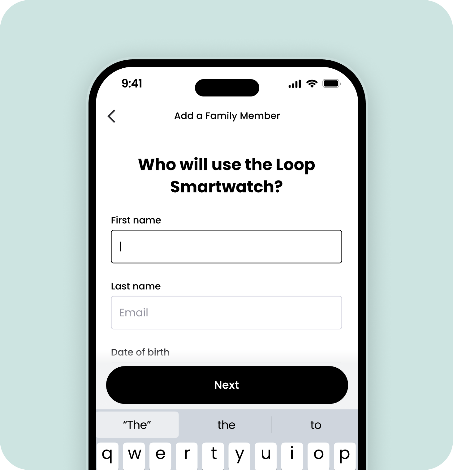 Suivez les instructions pour créer votre famille. Saisissez vos propres informations en tant que parent de la famille. Les coordonnées de l'enfant seront demandées ultérieurement lors de l'appairage de la montre.