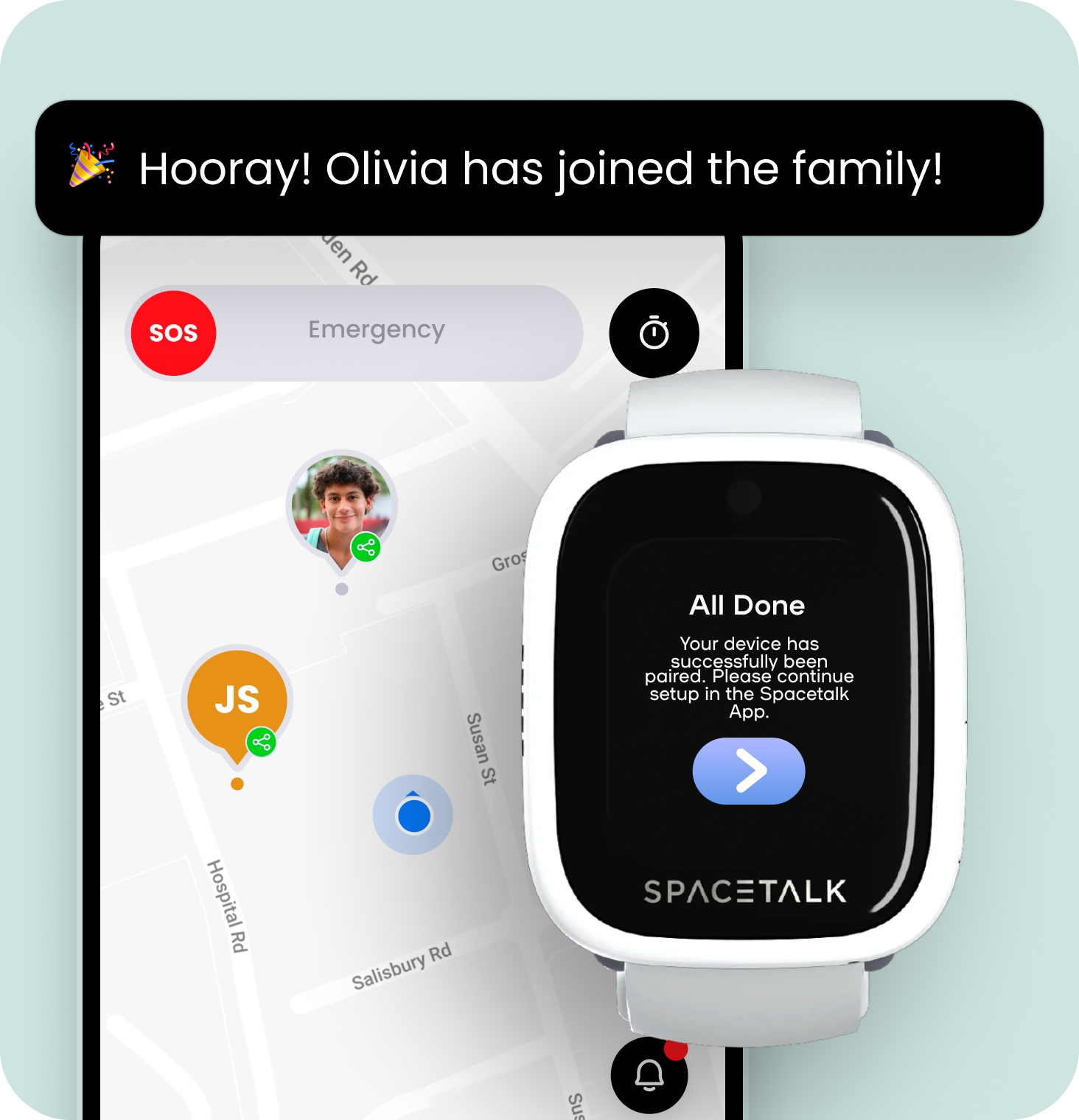 Nous vous aiderons à associer votre montre à l'application Spacetalk.