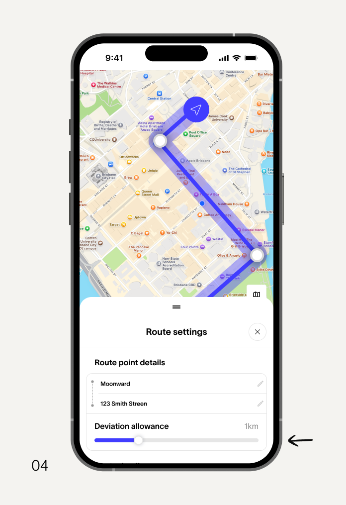 In the preview of the Route you are creating, you can decide how much deviation is allowed from the set Route.