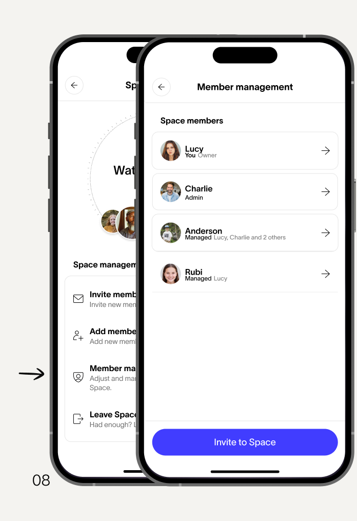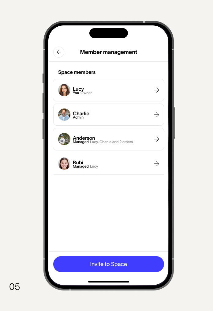 Invite your core family, extended members and trusted contacts to your Spaces and manage what you share with each of them