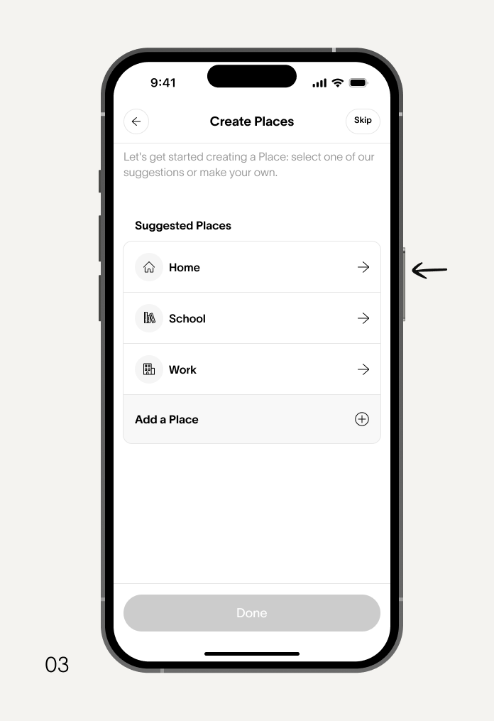 Add Places in a Space to get notified when the members of the Space arrive or leave frequent locations like home, school, and others.