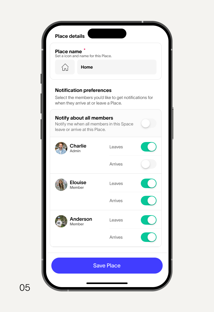 You can edit the name and icon and select what members you’d like to get notifications for when they arrive at or leave the Place.